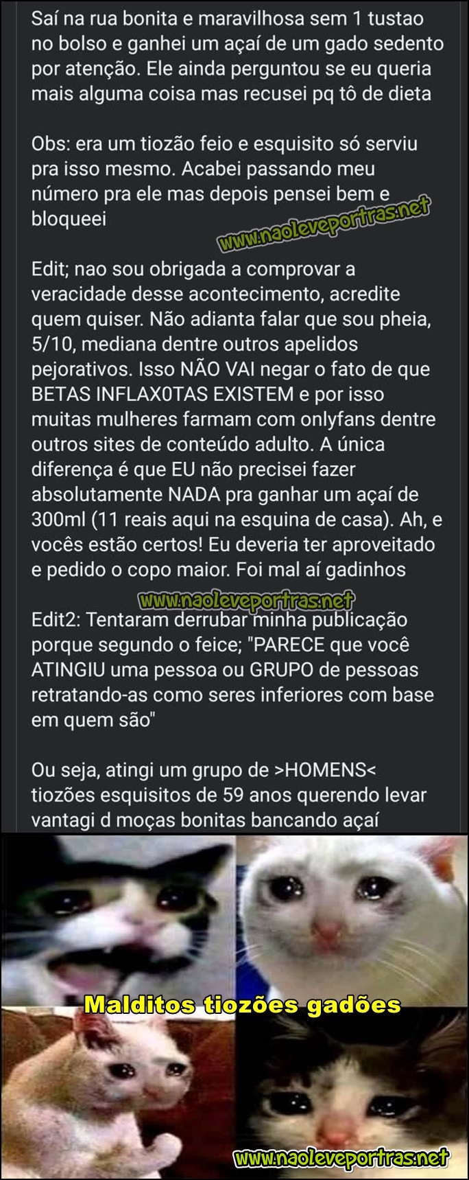 Segura esse ego inflado, e veja a causa dele Humor / 20/10/2025 / Deixe um comentário Isso mesmo tá ai o culpado da bagaça toda, os tiozões gadões mãos peluda zekadõess.Eles inflam o ego sem medir esforções, mendigando uma migalha de booc&t@ a todo custo.Ai depois essas donzela saem pelo mundo, achando que a viola toca assim com geral 😆 Compartilhar: Facebook WhatsApp Twitter Instagram